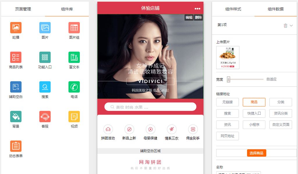 微信小程序/移动H5端 - 可视化拖拽式DIY 手机商城系统装修功能。