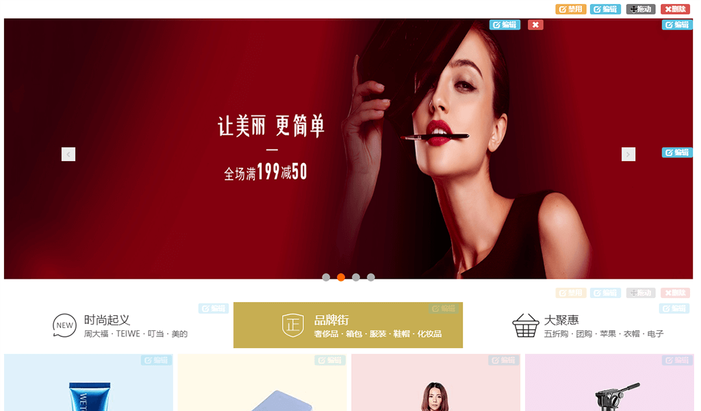 首页、专题页可视化编辑,多样化模板可供选择,大大降低页面维护成本