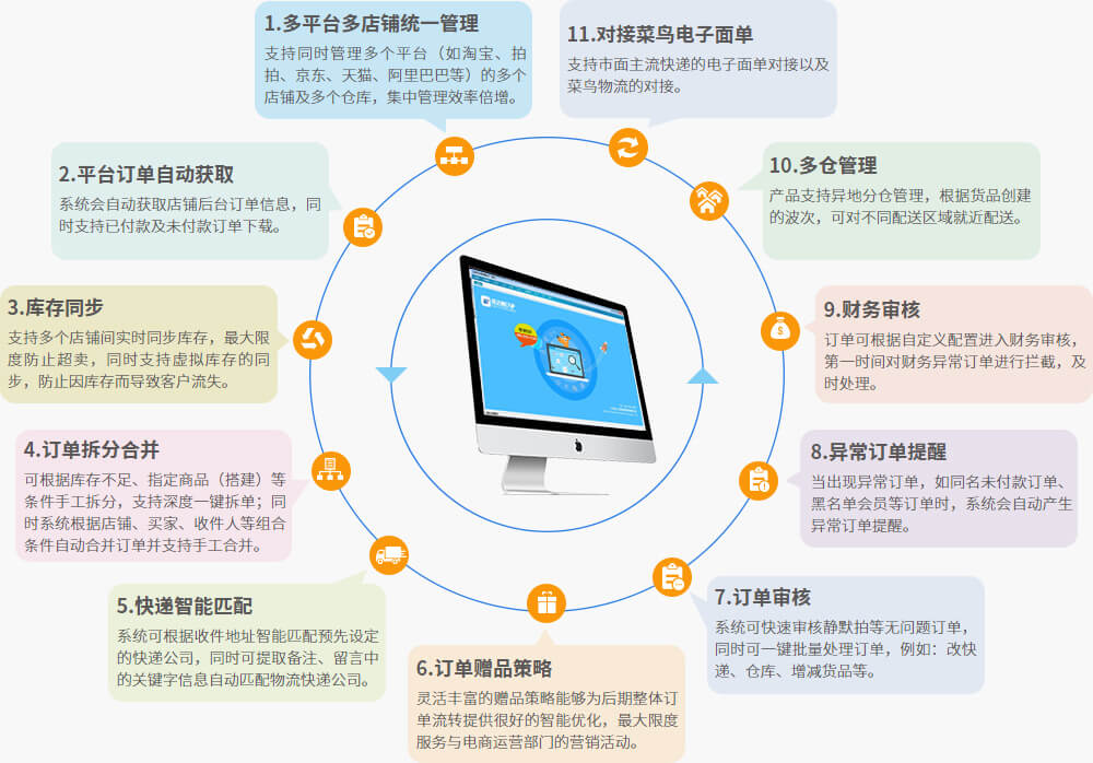 订单全自动处理、减少沟通和资源内耗、发货无漏单、全面支持扩展渠道和业务布局 、可扩展性的业务架构、提升企业内部工作效率