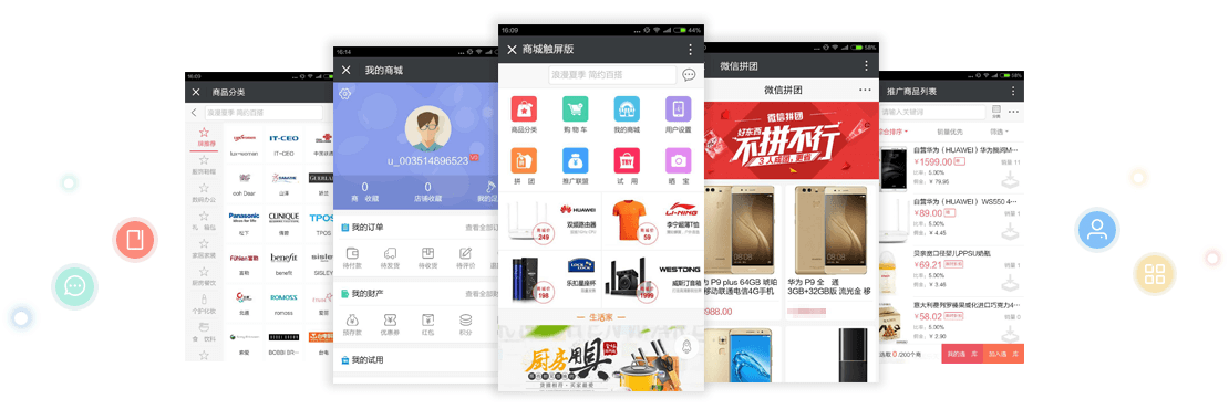 一键生成PC网店、iOS App、安卓App、H5微商城,互联网终端全面覆盖