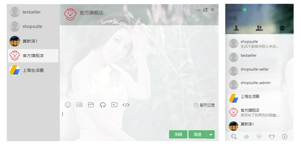 以往的QQ、旺旺客服已不能满足客户及时咨询的需求,随商SuteShop自主研发的平台客服沟通工具IM可对接商城,不用单独登录,即可进行网页聊天。